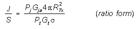 EQUATION FOR THE RANGE WHEN J/S CROSSOVER OCCURS (MONOSTATIC) - The J/S crossover range occurs for the case where J = S, substituting into equation [6] yields: