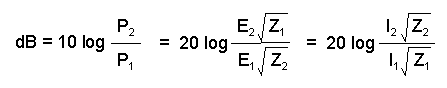 Decibel Formulas (where Z is the general form of R, including inductance and capacitance)