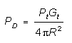 We solve for PD@2 m = 10-11(1852m)2/(2m)2 = 8.57 x 10-6 mW/m2 = -50.7 dBm/m2