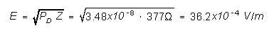 20 log (E) = 20 log (106 x 36.2x10-4 ) = 20 log (0.362x104 ) = 71.18 dBµV/m, which is approximately70 dBµV/m as given in Figure 1.