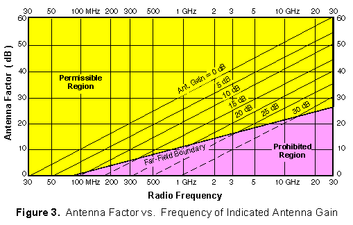 This equation is plotted in Figure 3. Since all of the equations in this section were developed using far field antenna theory, use only the indicated region.