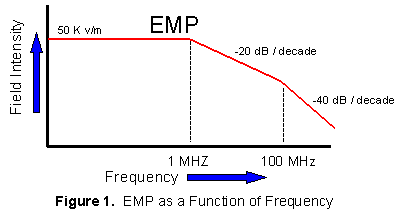 dipole). The electromagnetic pulse spectrum decreases above 1