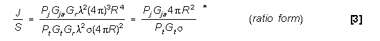 J-S Ratio (Monostatic) The ratio of the power received (Pr1 or J) from the jamming signal transmitted from the target to the power received (Pr2 or S) from the radar skin return from the target equals J/S.