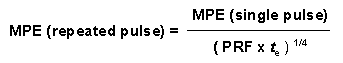 For repeated pulses the following equation is used to calculate the maximum permissible exposure (MPE).