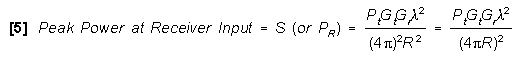 The one-way radar (signal strength) equation [5] is rearranged to calculate the maximum range Rmax of RWR/ESM receivers. It occurs when the received radar signal just equals Smin as follows: