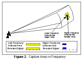 A receiving antenna captures a portion of this power determined by it's effective capture Area (Ae). The received power available at the antenna terminals is the power density times the effective capture area (Ae) of the receiving antenna.