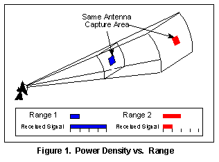 Recall from the Power Density Section that the power density at a distant point from a radar with an antenna gain of Gt is the power density from an isotropic antenna multiplied by the radar antenna gain.