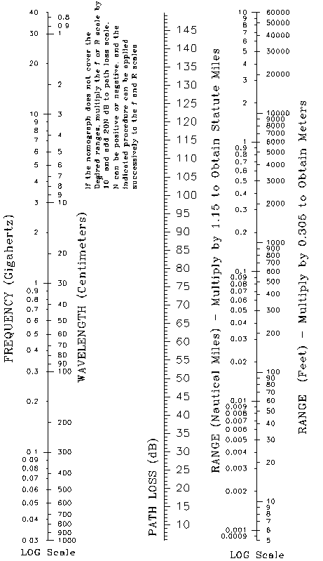 (a) The One-way Free Space Loss graph (Figure 4). Added accuracy can be obtained using the Frequency Extrapolation graph (Figure 5) |