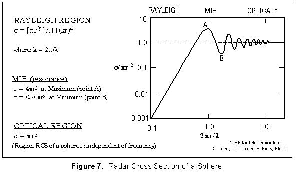 Figure 7 shows the different regions applicable for computing the RCS of a sphere.