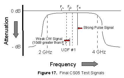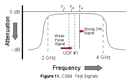 The intent is for a weak desired signal to be received in the presence of an adjacent CW signal. The desired signal is kept tuned at minimal power level and a strong unmodulated signal is tuned outside the UDF region. Radar and EW receivers without preselectors are likely to experience interference when this test is performed inband. Receivers with nonlinear devices before their passive band pass filter, or filters that degrade out of band, are likely to experience susceptibility problems when this test is performed out of band.