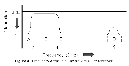 (2) Band pass filters with poor characteristics tend to pass signals with only limited attenuation at frequencies that are three times the center frequency of the band pass filter. Passage of a CW or high duty cycle signal that is out of band may desensitize or interfere with the processing of a weak inband signal.