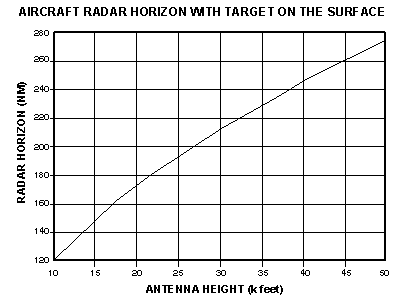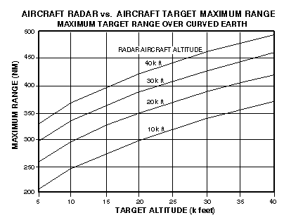 Figure 5 depicts the same for aircraft radars. It should be noted that most aircraft radars are limited in power output, and would not detect small or surface objects at the listed ranges.