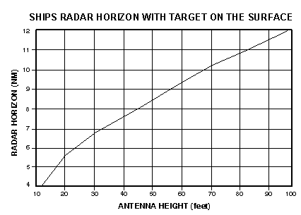 Figure 4 depicts the maximum range that a ship height antenna can detect a zero height object (i.e. rowboat