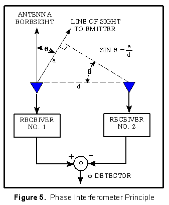 Phase interferometer DF systems are utilized when accurate angle-of-arrival information is required. They have the advantage of fast response, but require relatively complex microwave circuitry, which must maintain a precise phase match over a wide frequency band under extreme environmental conditions. When high accuracy is required (on the order of 0.1 to 1 ° ), wide baseline interferometers are utilized with ambiguity resolving circuitry.
