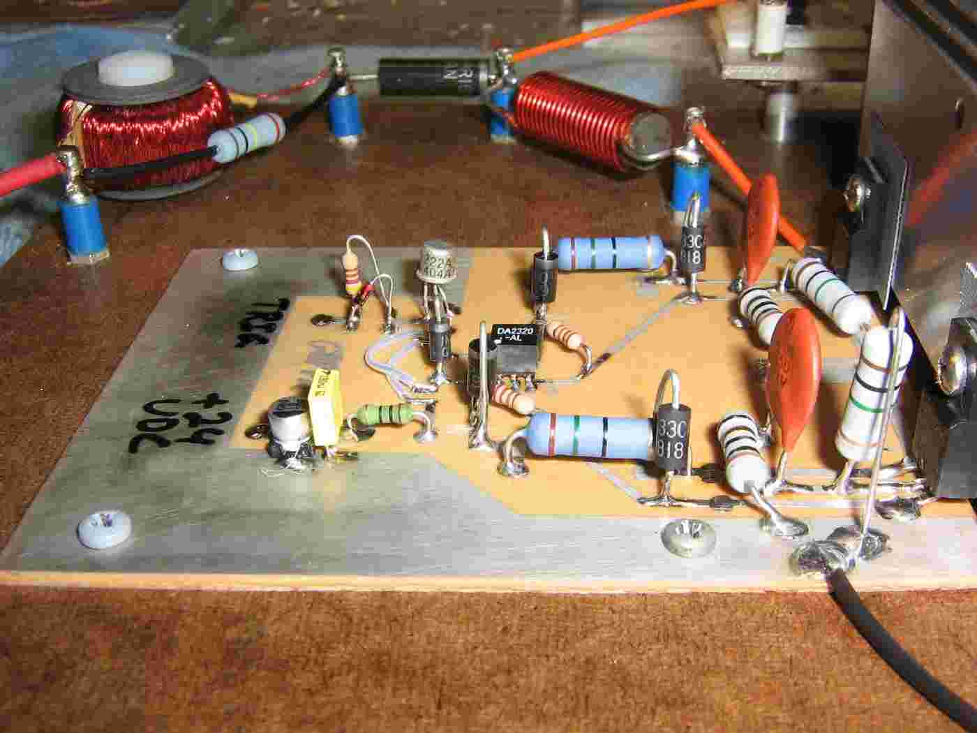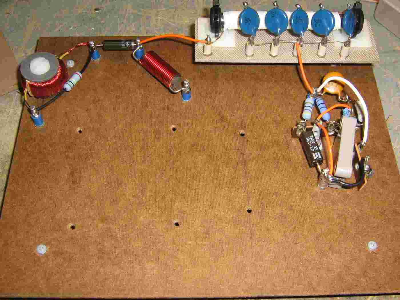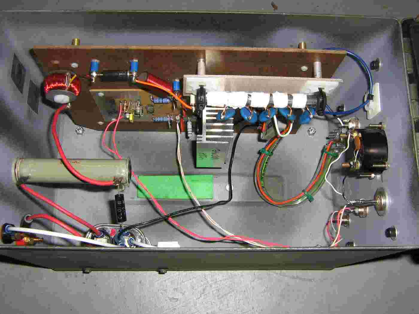 The big green cylinder is the series 47 ohm / 50 watt resistor.