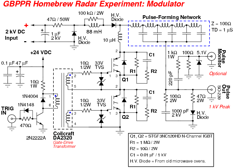 While not the most electrically complicated section of a radar system, the pulse modulator is the one section I am not really sure about, and should still be considered very experimental.