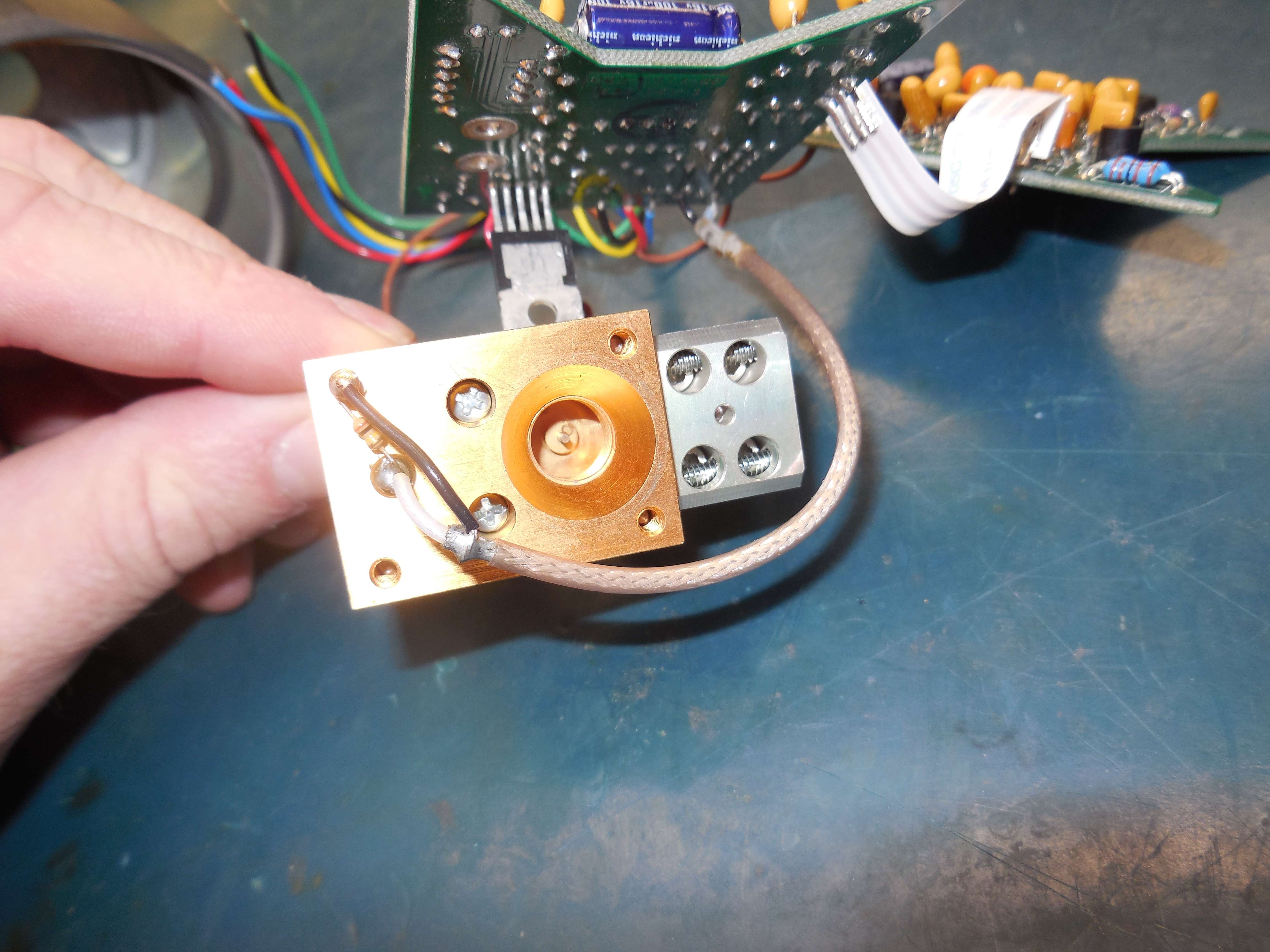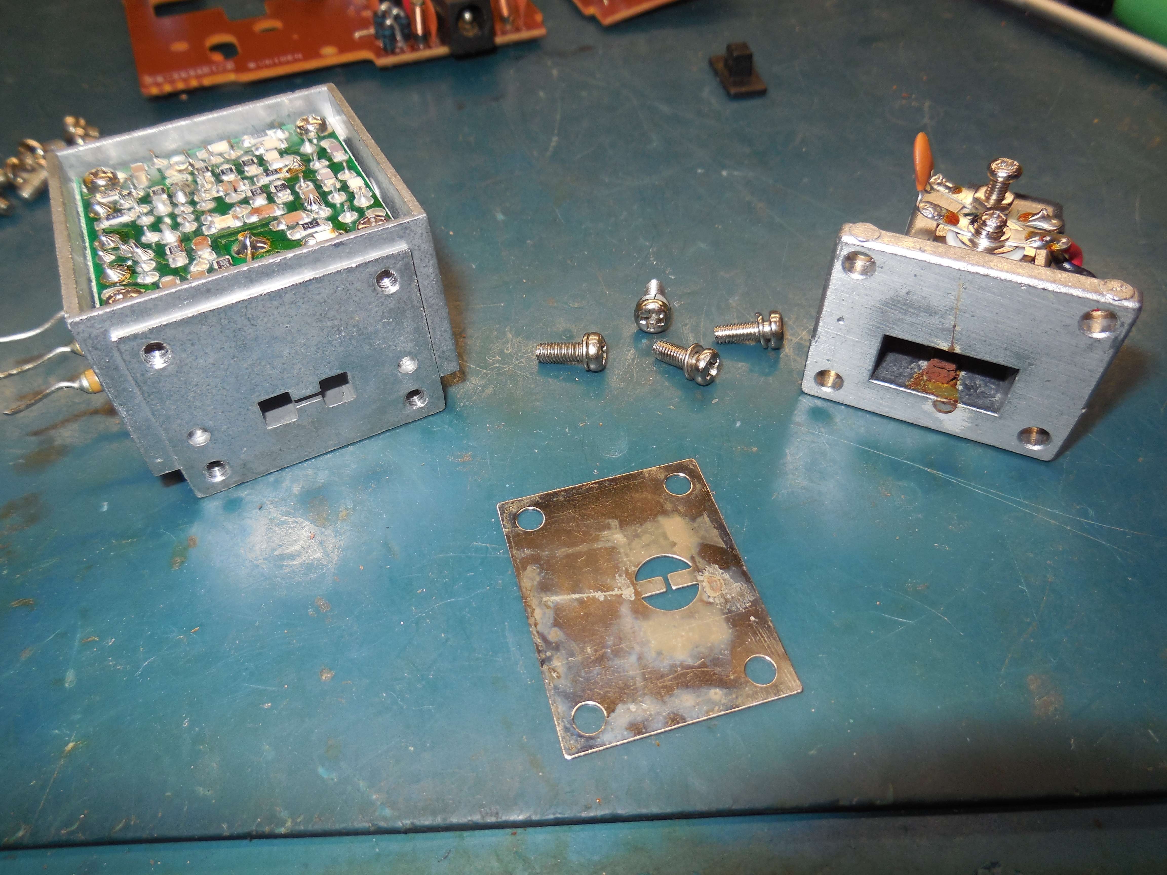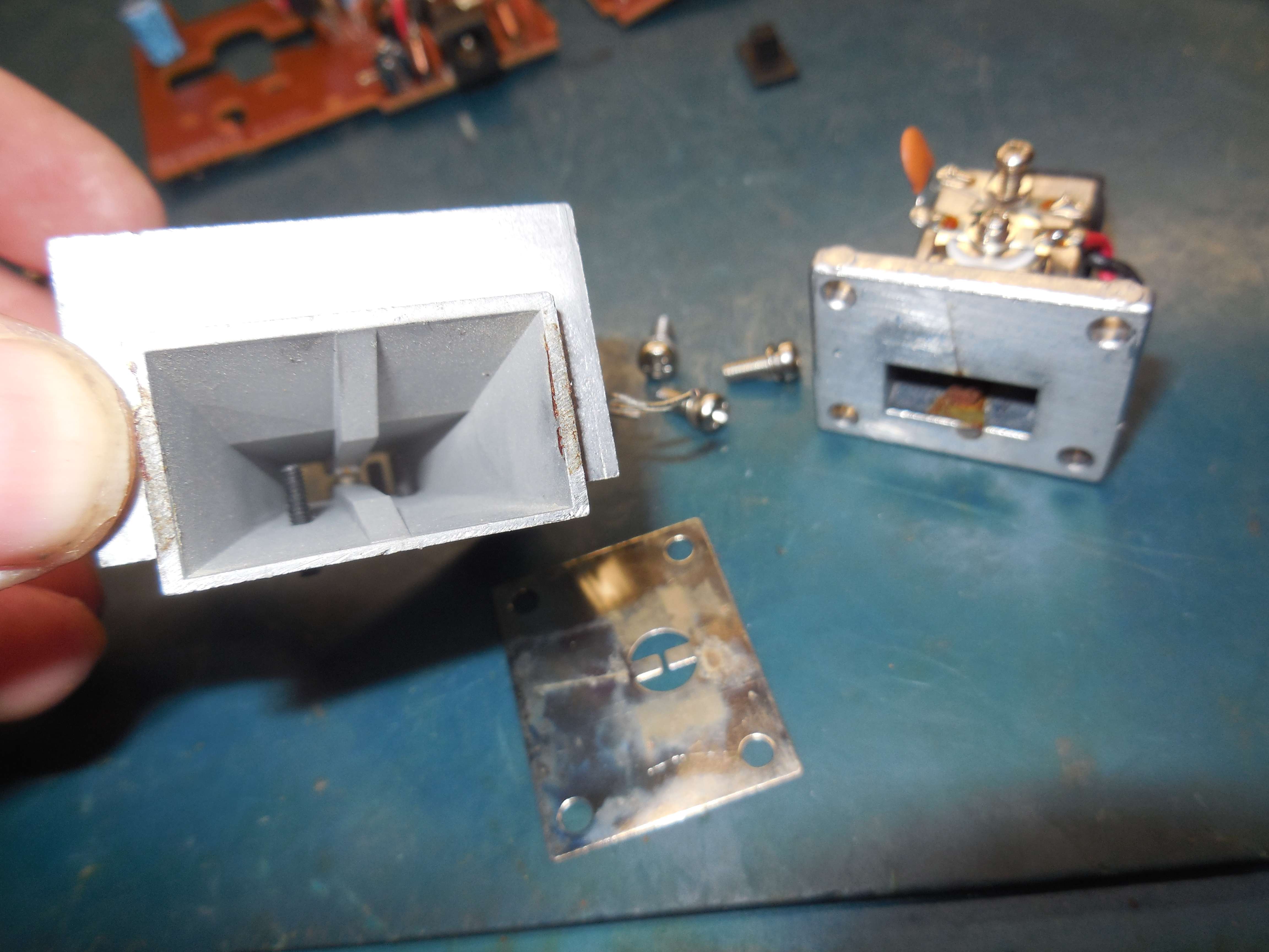 Mixer diode is on the left, local oscillator Gunn diode is on the right.