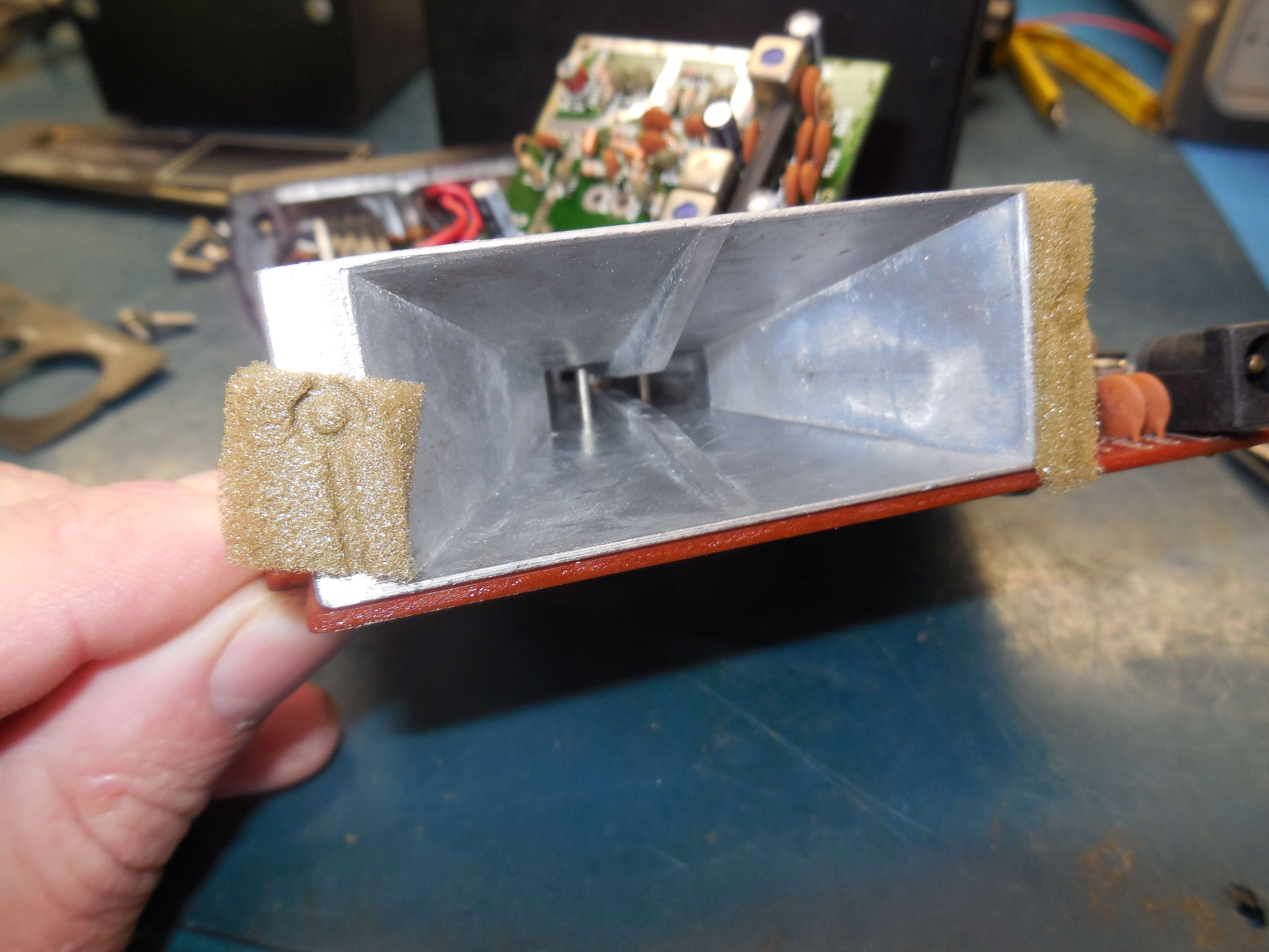 Looking down the horn antenna assembly showing the 1N23CR mixer diodes.