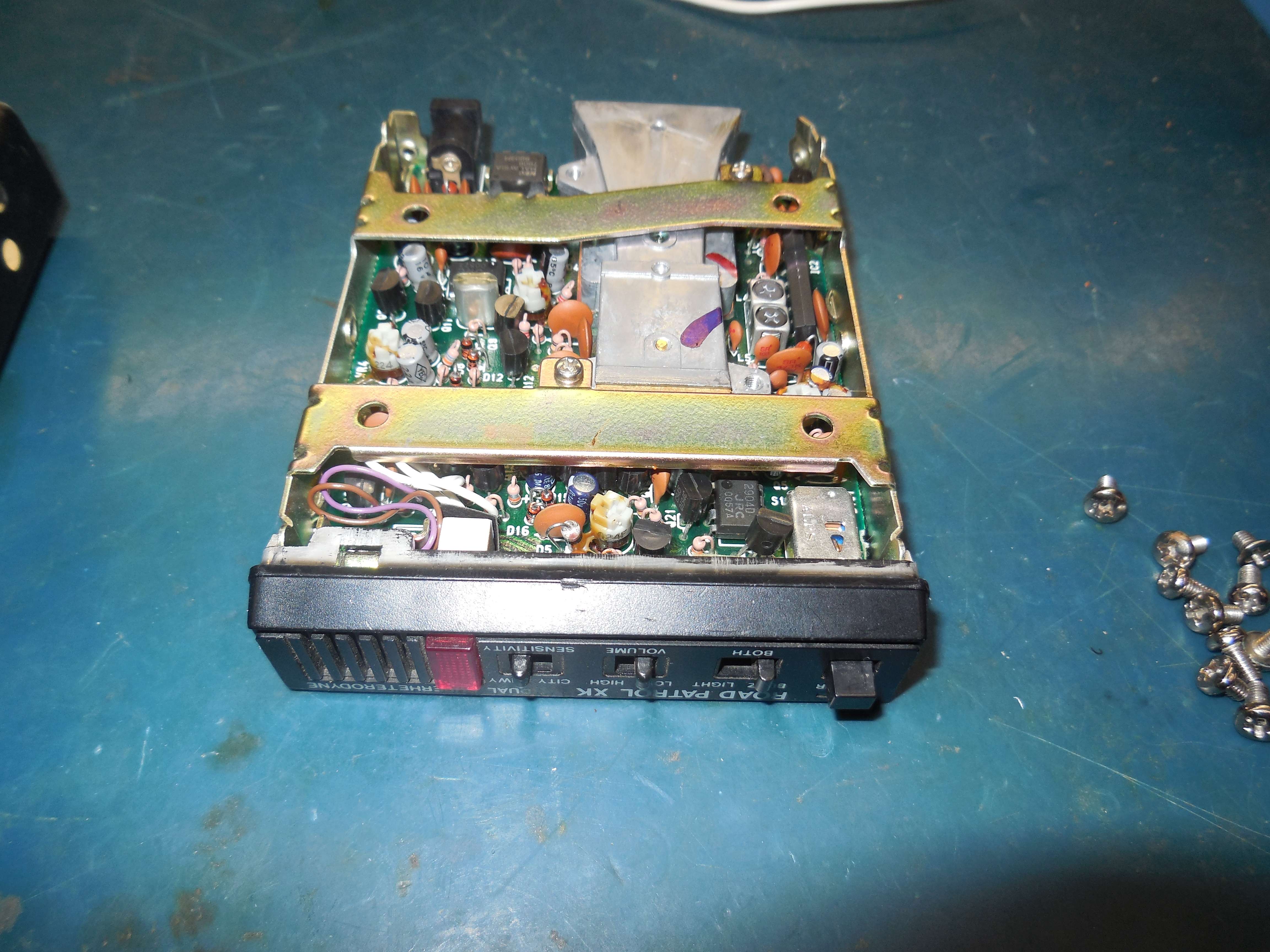 Looking down the horn of a modern radar detector showing the Schottky diode up font.