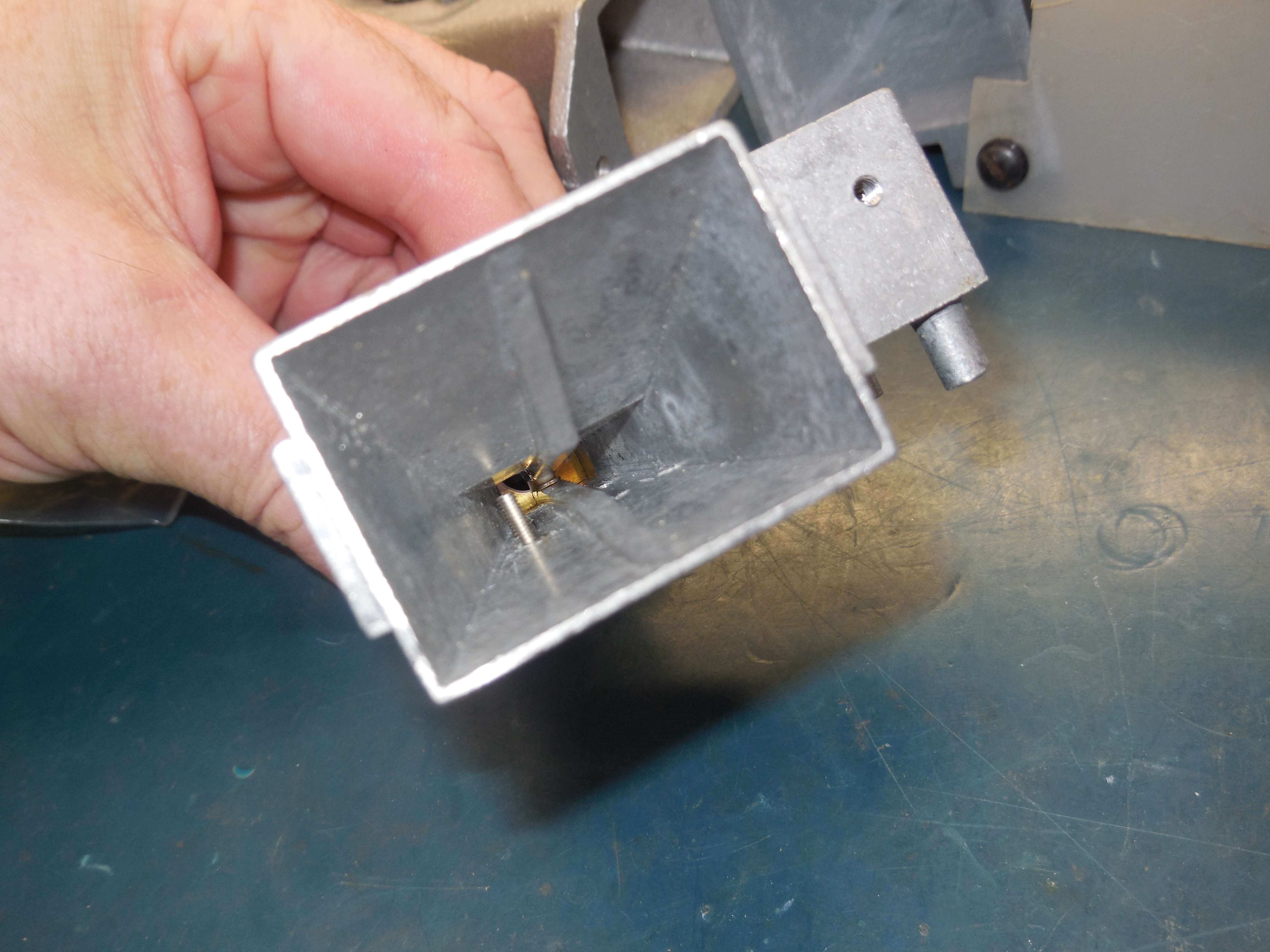 Looking down the horn antenna assembly showing the Schottky mixer diode.