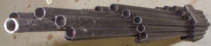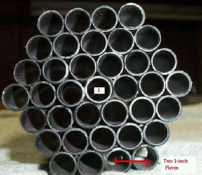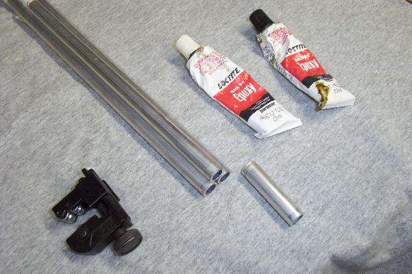 Start with about sixty feet of 1/2-inch O.D. aluminium tubing. The original article used 3/8-inch diameter tubing, but 1/2-inch seems to be much easier to find at the hardware store. Also pick up some two-part, fast-drying epoxy, and a good tubing cutter. Copper tubing can be used in a pinch.