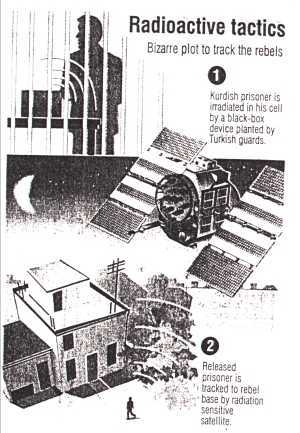 A BRITISH security company which is under investigation by Scotland Yard over an alleged plot to kill a guerrilla leader proposed the use of radiation to poison Kurdish prisoners. Aims Ltd, of Salisbury, Wiltshire, which has close links to British intelligence and the SAS, offered to arrange to irradiate Kurdish rebels held by the Turks in northern Iraq. The company told Turkish military authorities that after the Kurds were released the radiation would make it possible to track their movements and follow them to their bases. It added that the prisoners could fall ill from radiation poisoning within 21 days. Aims is already being investigated by Scotland Yard after The Sunday Times revealed that it had plotted to assassinate Abdullah Ocalan, leader of the Turkish PKK guerrilla group, for a fee of £5.75m. Now it faces fresh allegations that it has engaged in a string of mercenary activities. Confidential documents seen by The Sunday Times show that Brian Smith, the company's boss who goes by the name of "Tom", suggested the radiation poisoning in a five-page briefing document prepared for the Turkish security authorities. After discussing options for tracking the rebels, including heat detection or ultraviolet or infrared viewers, he wrote: "Radiation detection. This is a method in which a radioactive source is placed in the target and the source is then monitored. "This can be done by aircraft or satellite. The downside is that the target succumbs to radiation poisoning in approximately 21 days. This has been used by certain nations when they have released PoWs." A security official involved in the deal said Aims proposed to irradiate the prisoners from a source hidden in a metal box on a table in an interrogation cell.