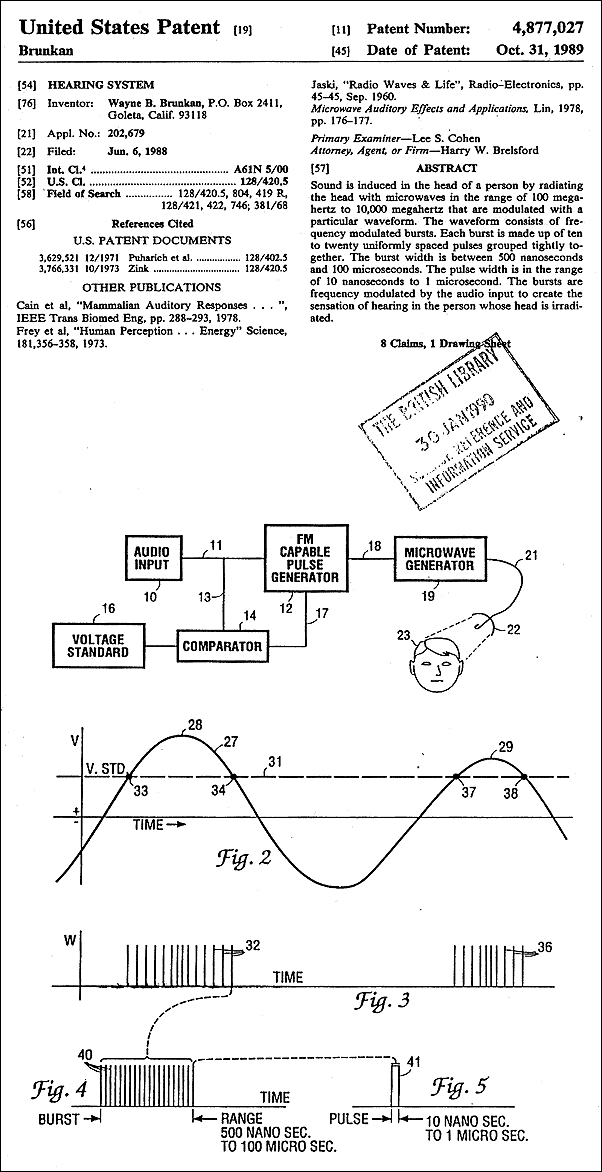 Hearing System, US Patent #4,877,027, Wayne Brunkan,