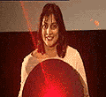 video player) Physical properties of the air then distort the beam producing a range of frequencies including audible sound. As Jo knows exactly how much distortion the air causes, he can predict how to combine the music with the ultrasound to get the music out again. The ultrasound transmits audible sound in a long thin beam, just half a metre wide. The sound quality isn't strong enough yet to cover very long distances, but once it is, it could be used to pick out just one person in a crowd: a personal message system in public places like airports and stations, or even a personal speaker for music. |