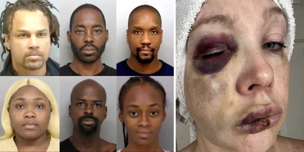 - White Woman Beaten by Black Mob Speaks Out After Near-Death Attack Six suspects have been indicted on charges related to a violent attack on two people in downtown Cincinnati, Ohio, that occurred late July. The six suspects are facing eight charges each: three counts of felonious assault, three counts of assault, and two counts of aggravated riot.