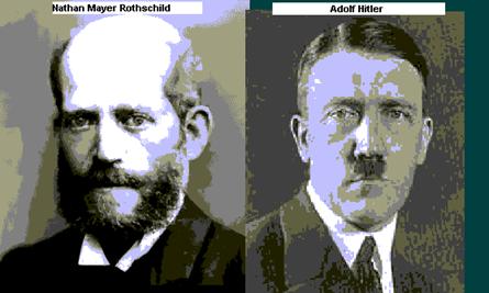 Family resemblance? Not a bit, yet some imagine it. This photo comparison is found on Internet sites as evidence of Hitler’s Rothschild lineage!