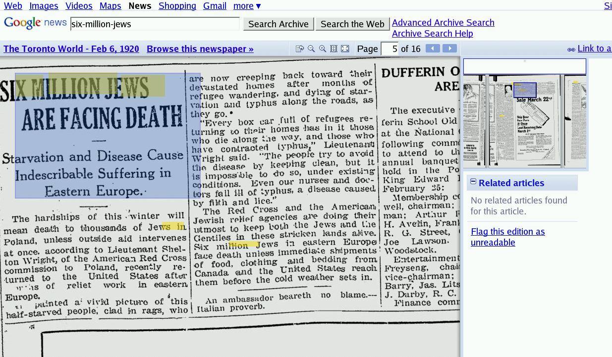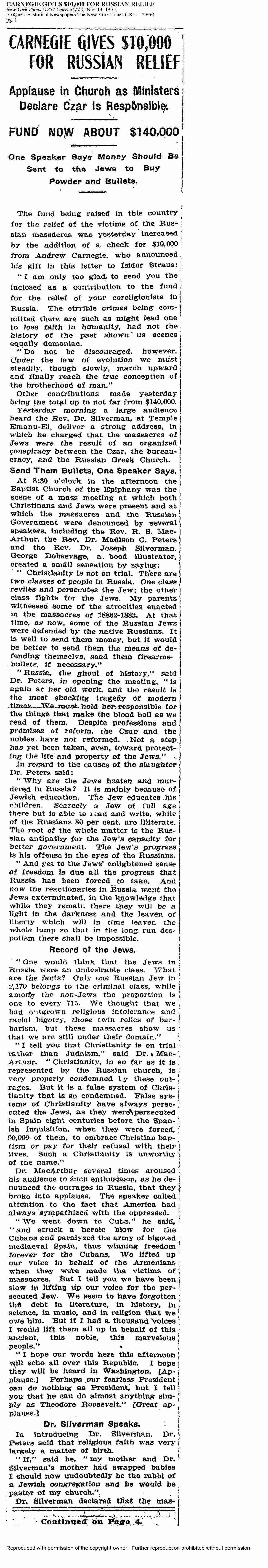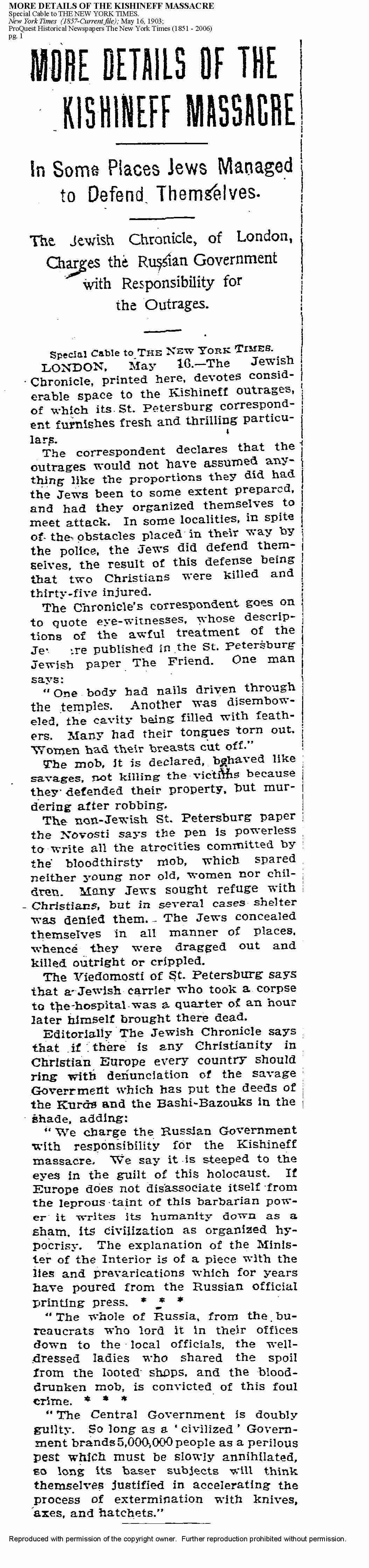 - Reports that Russia's "6,000,000 jews" facing a "final solution" of "systematic and murderous extermination" in 1906!