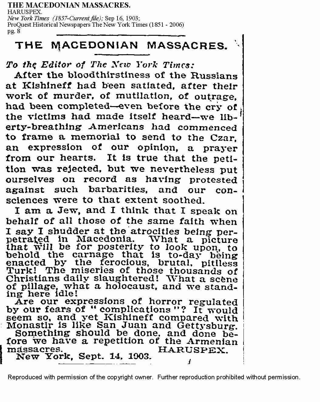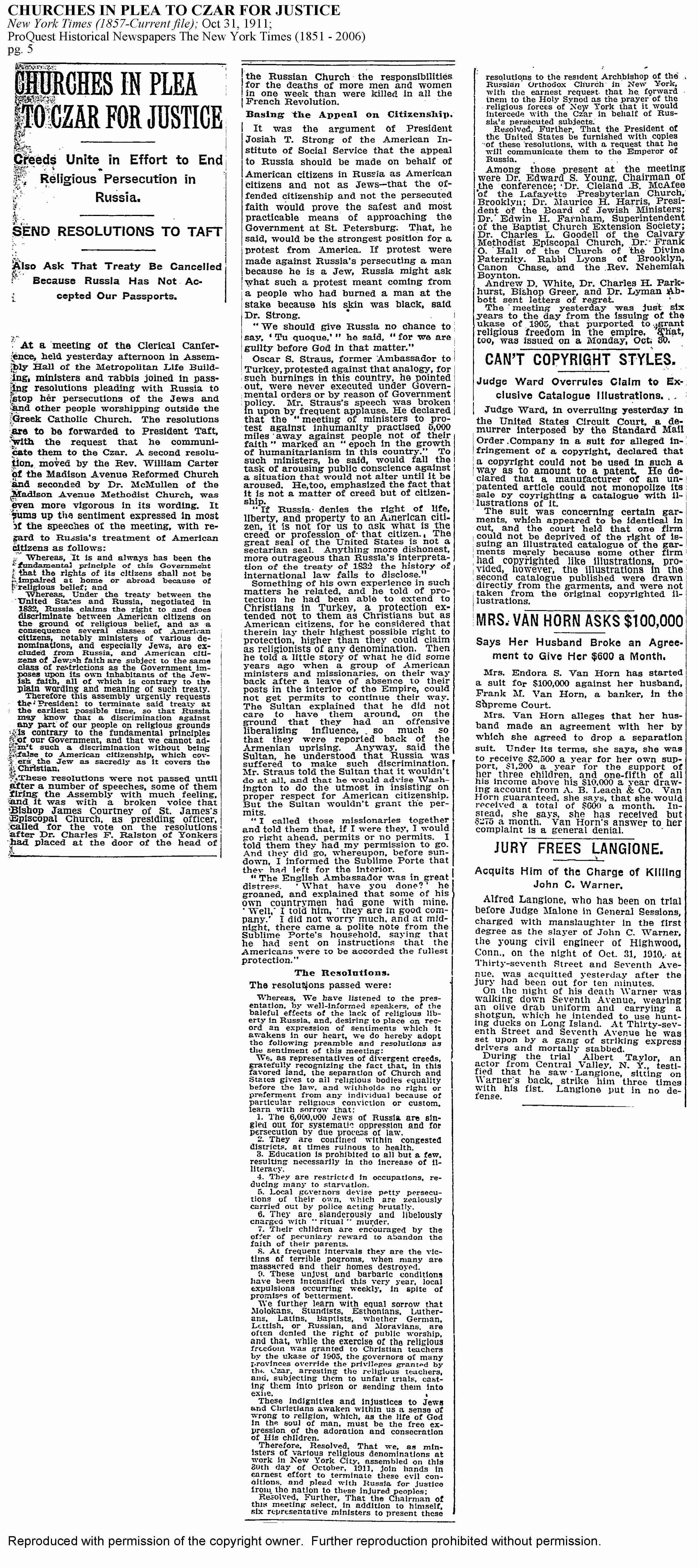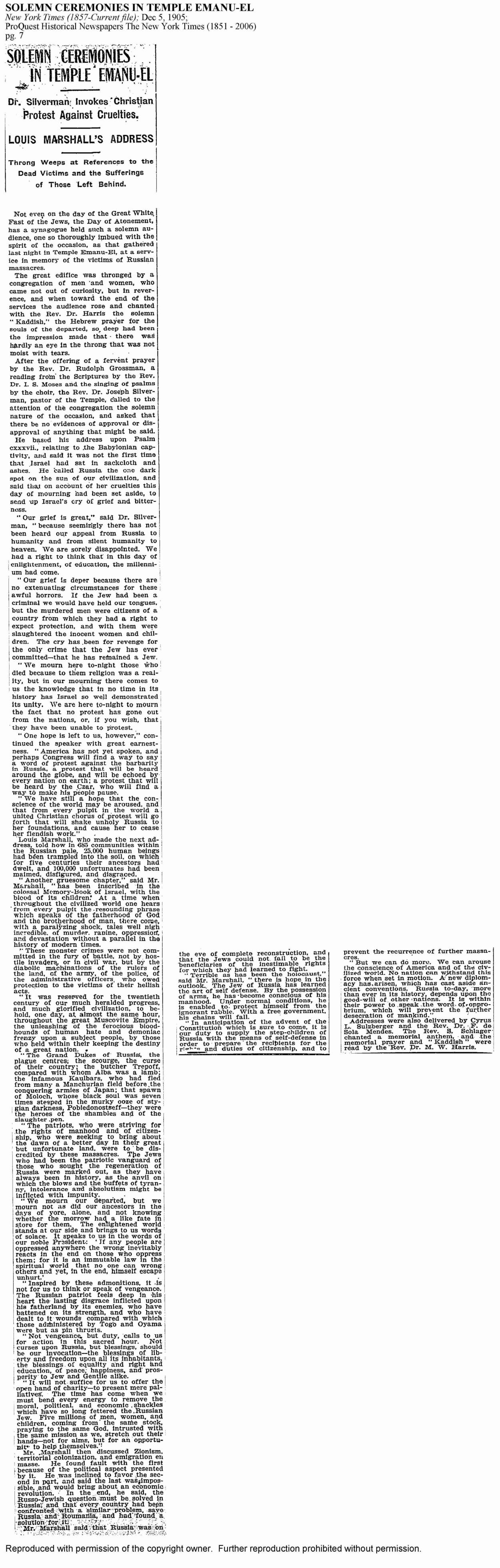 - Reports that Russia's "6,000,000 jews" facing a "final solution" of "systematic and murderous extermination" in 1906!