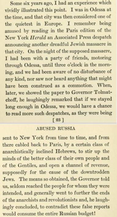 - "[Dr Nathan] ... calling upon the soldiers to 'rise and crush the traitors who are plotting to upset the holy Government of the Czar and substitute for it a Jewish empire.'" The Bolshevik revolution was really a Jewish revolution.