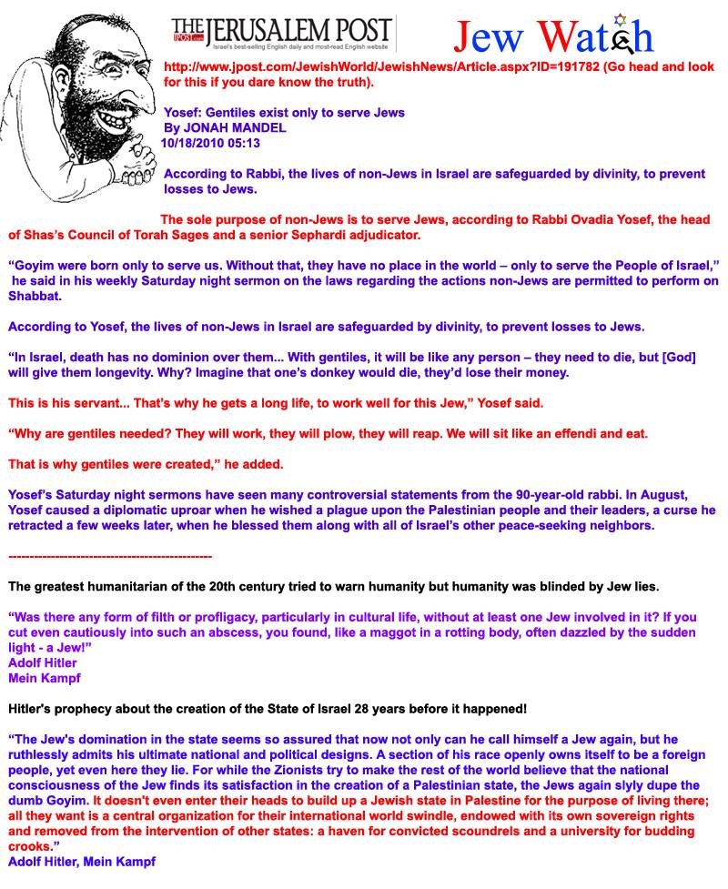 - Jew Settler Explains Zionism to Palestinian Farmers "If you behave, you might be our slaves." (YouTube)