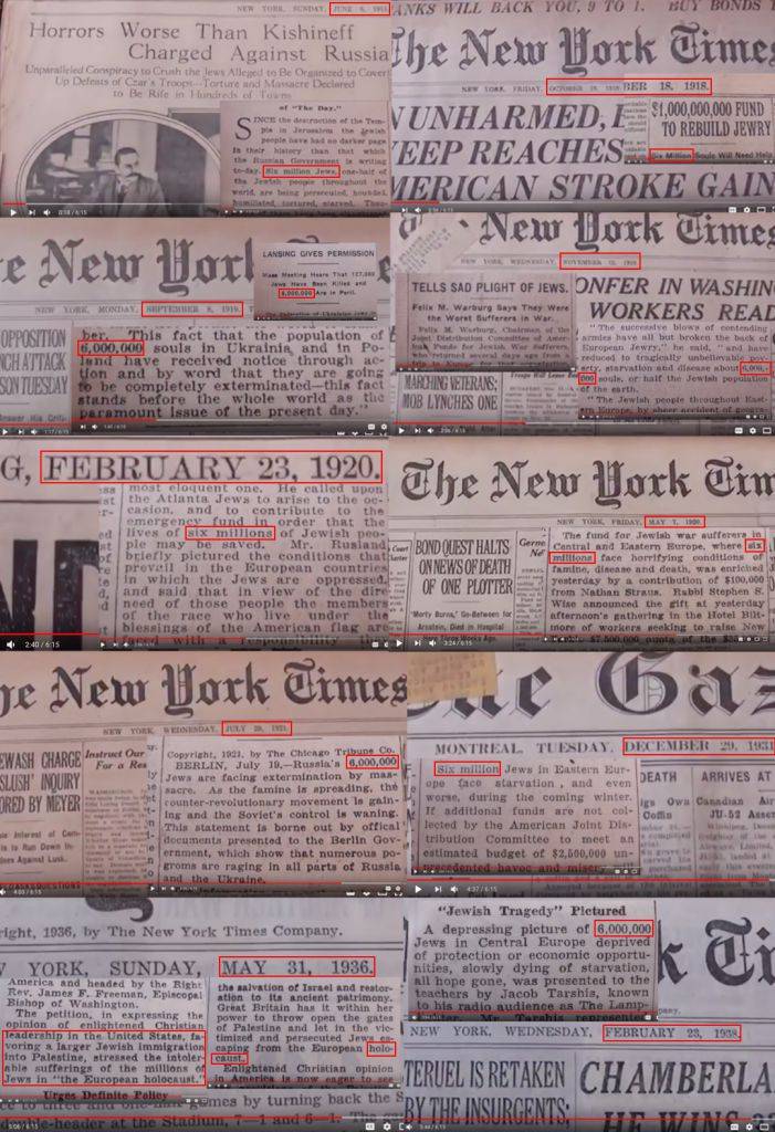 Additional collection of The New York Times articles where the "six million jews" was floated 42 years before the end of World War 2.
