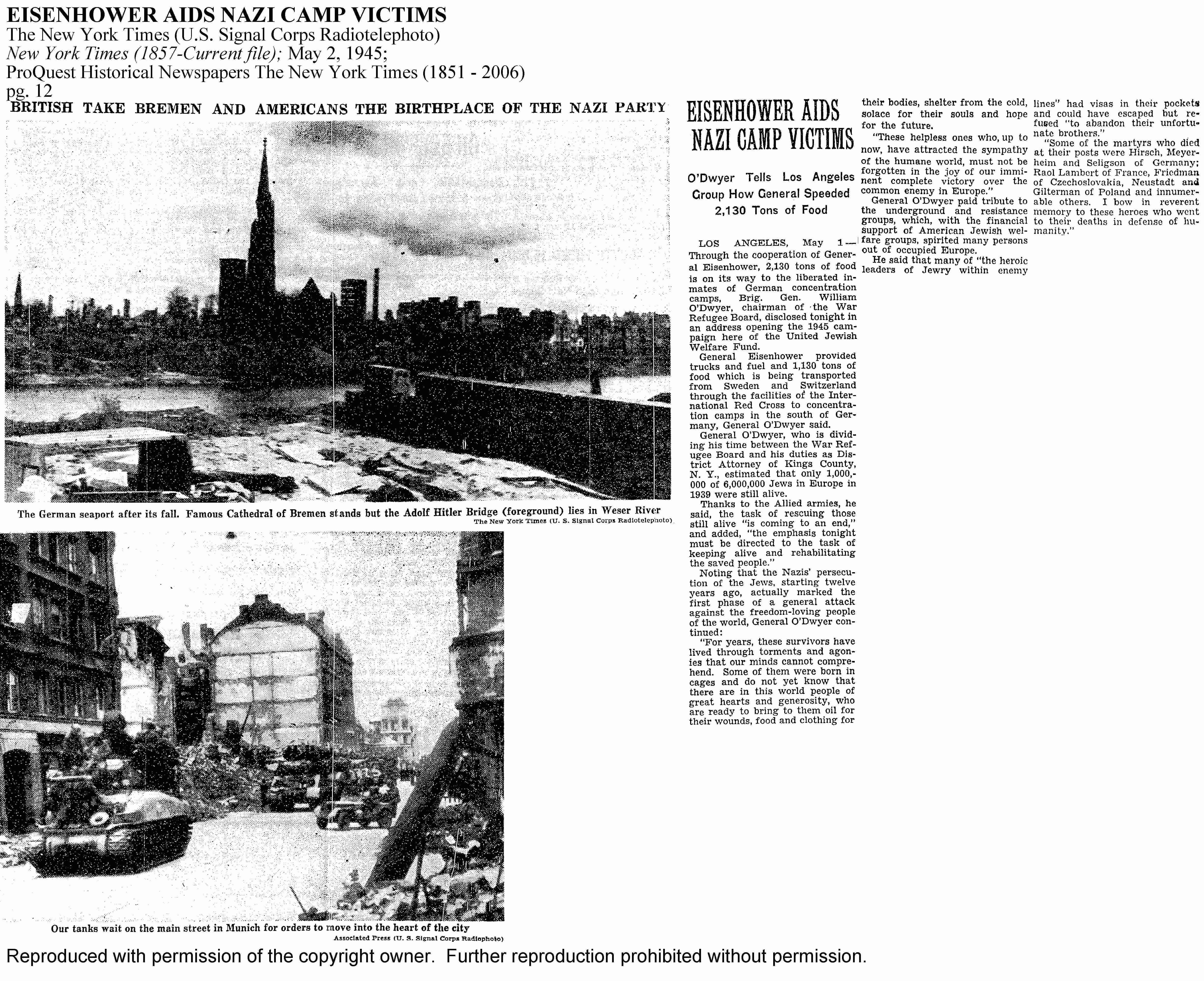 - The New York Times (U.S. Signal Corps Radiotelephoto); May 2, 1945; pg. 12