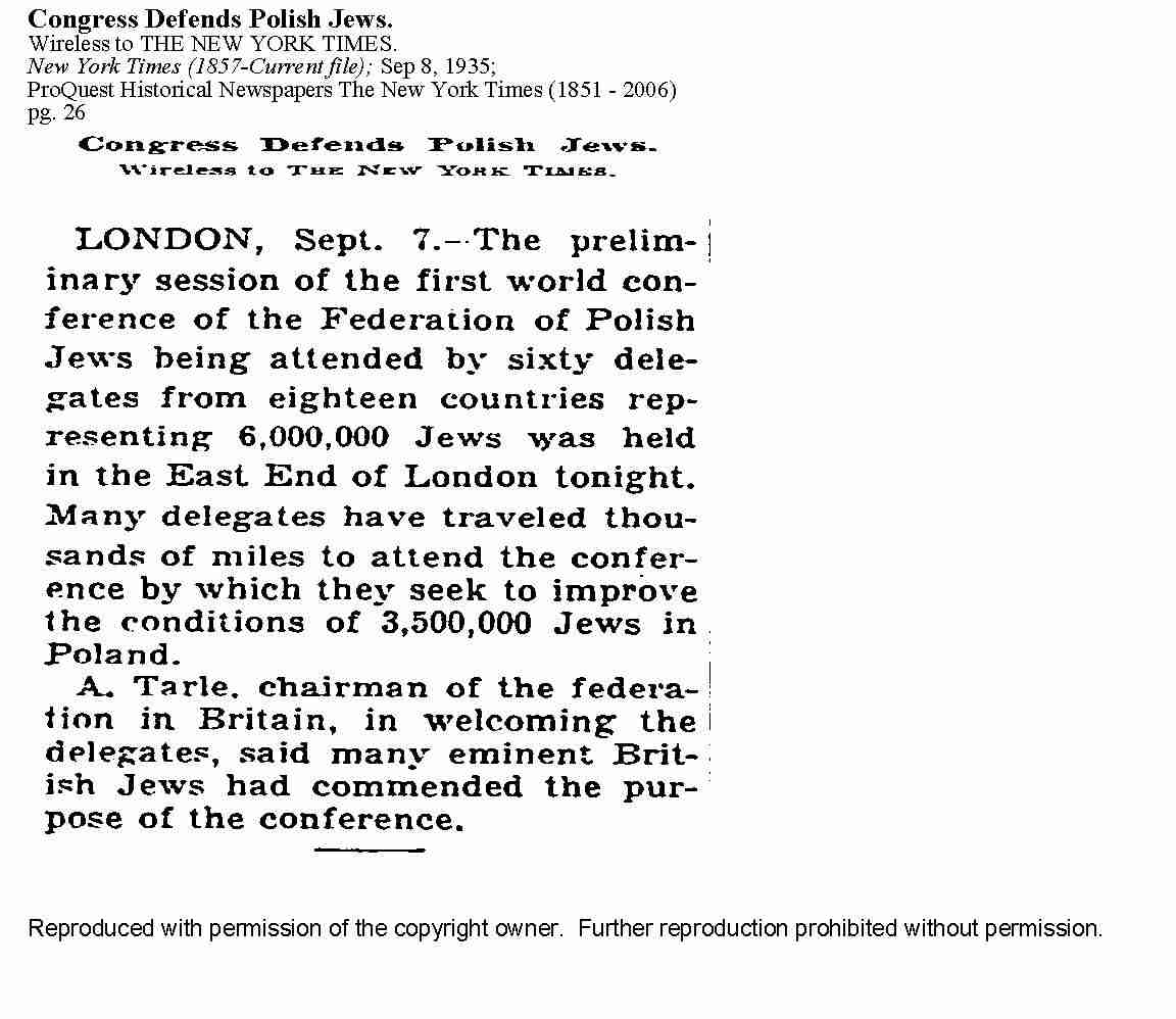 - "'How do the 5,000,000 jews living in the proposed Pan Polish State view the question?'"