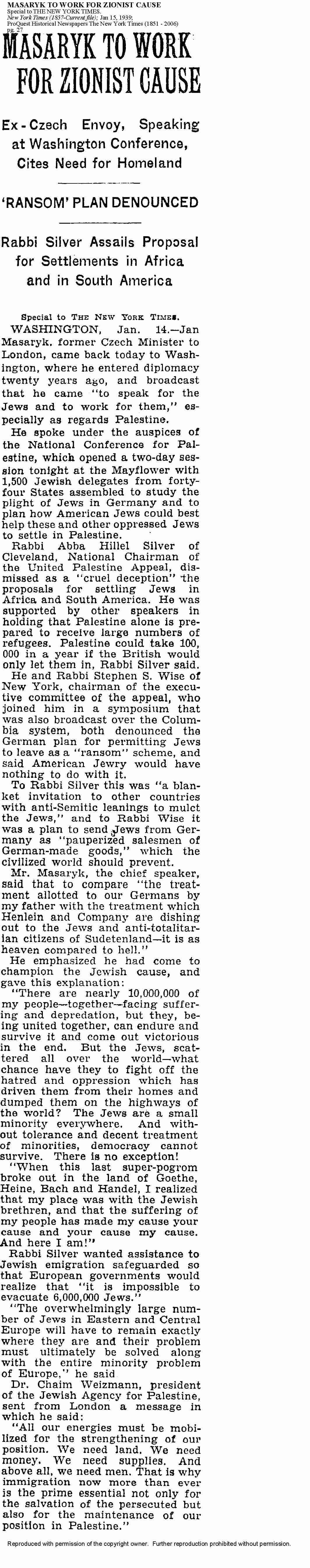 - "Rabbi Silver wanted assistance to Jewish emigration safeguarded so that European governments would realize that 'it is impossible to evacuate 6,000,000 jews.'"