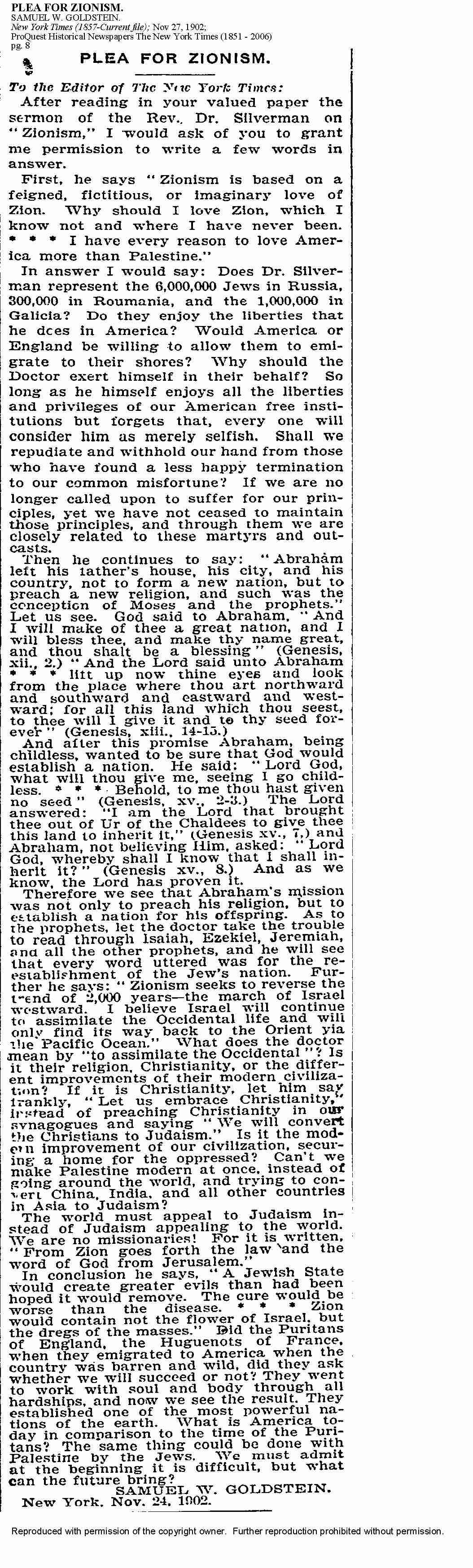 - "He declared that a free and a happy Russia, with its 6,000,00 jews, would possibly mean the end of Zionism, since the abolition of the autocracy would practically eliminate the causes that brought Zionism into existence."