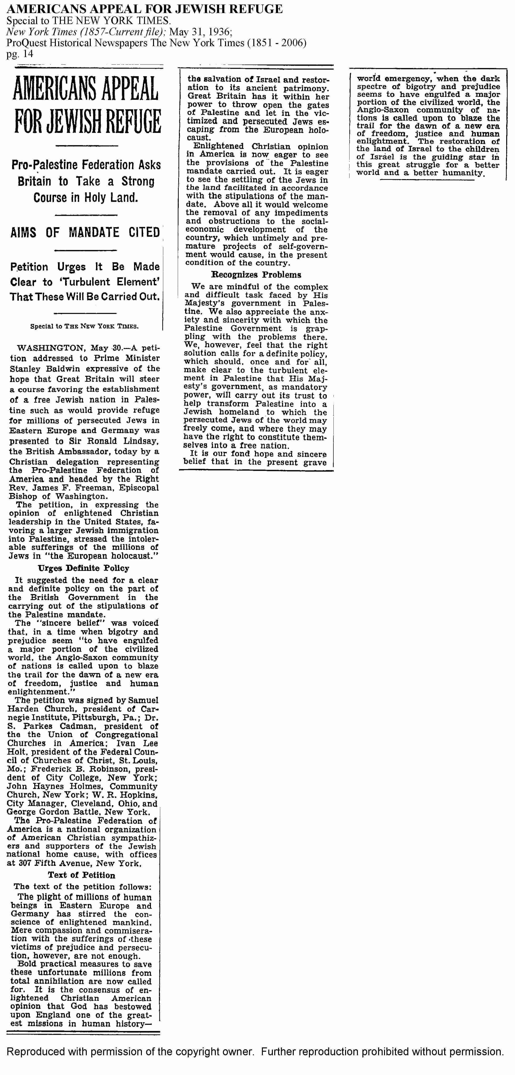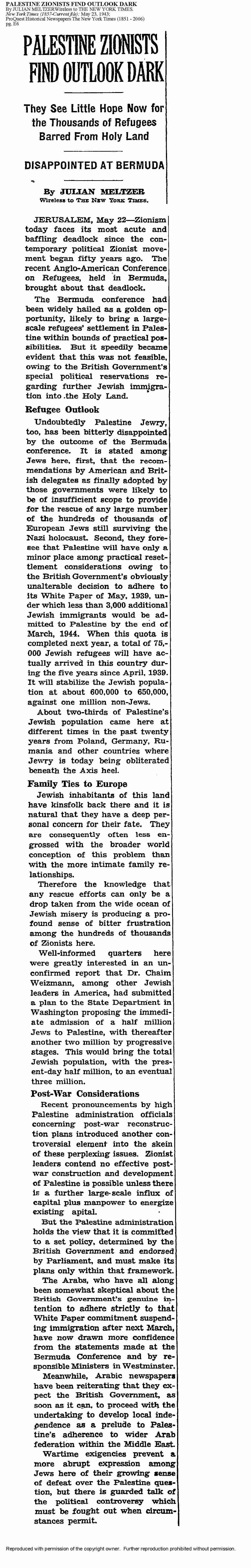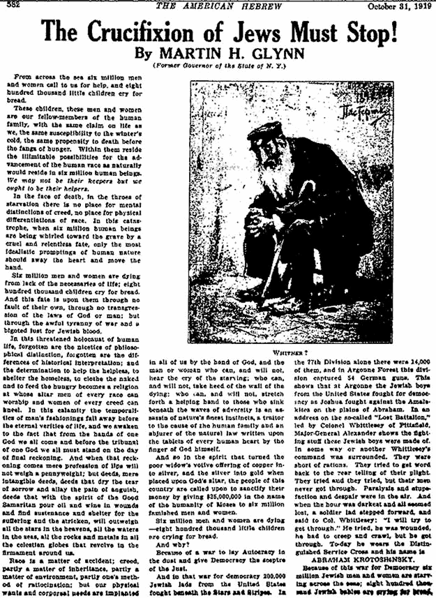 - "A depressing picture of 6,000,000 jews in Central Europe deprived of protection or economic opportunities, slowly dying of starvation..."