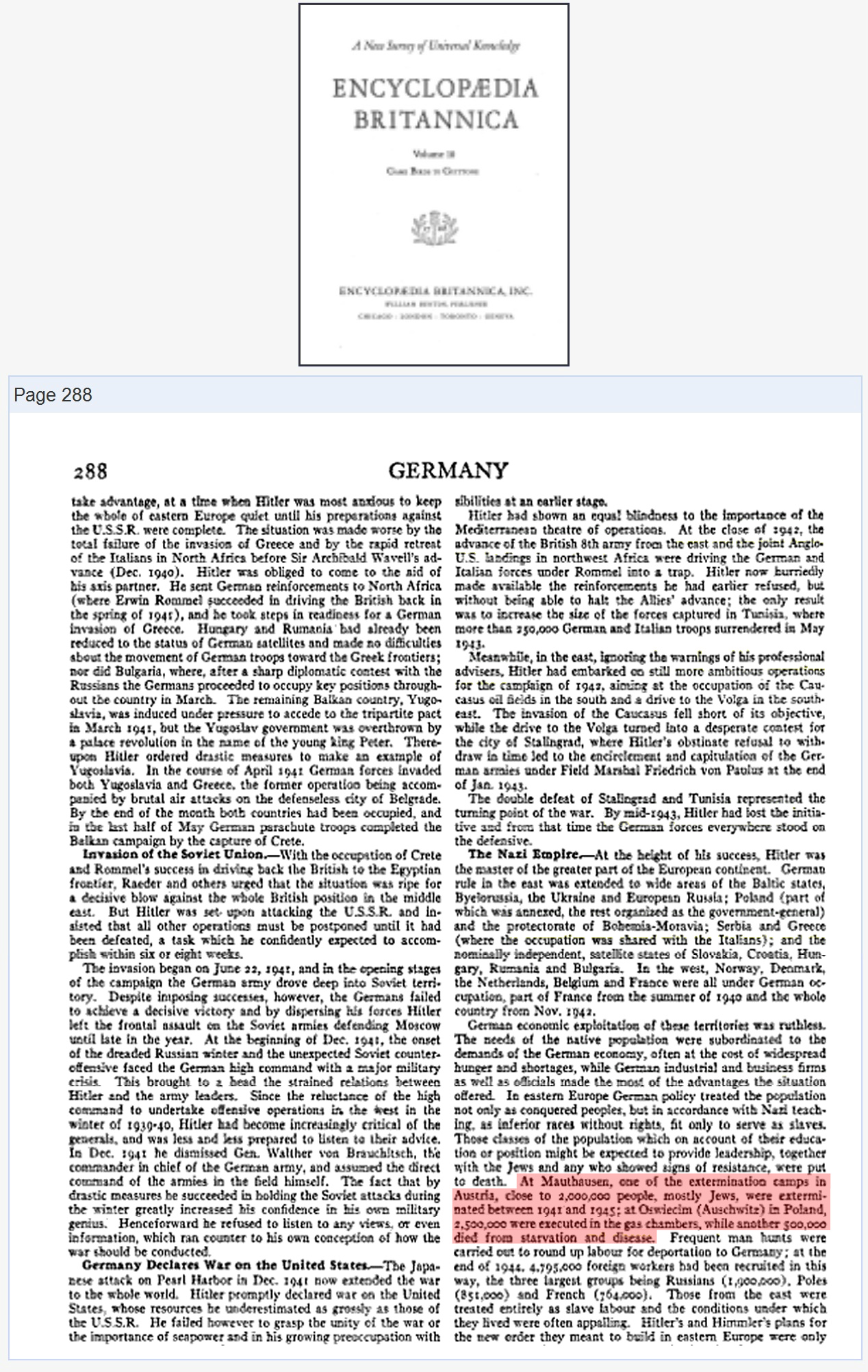 Under its entry on “anti-Semitism”, the tenth edition of the Encyclopedia Britannica references “Six Million Jews” of Rumania and Russia being “systematically degraded.”