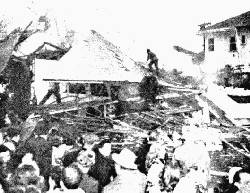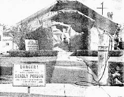 The residents of a house in Los Angeles, California, had to learn this in a quite painful way shortly before Christmas 1947. They had hired the Guarantee Fumigation Company to destroy the termites which threatened to eat up the wooden structure. The pest controllers, however, were apparently not very competent, because when using a container of pressurized HCN to fill the house, which had been wrapped up like a Christmas present, they exceeded safe limits and pumped in too much gas. (Fig. 2).[15] Due to unknown reasons, the mixture of air and HCN, which can be highly explosive under certain circumstances, ignited during the fumigation. The resulting explosion destroyed the entire dwelling.[16]