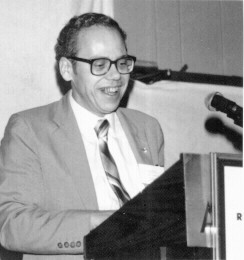 Fig. 7: Frederick A. Leuchter, the world's first, and possibly only, cyanide gas chamber expert, during a talk at the conference of the Institute for Historical Review in 1992 |