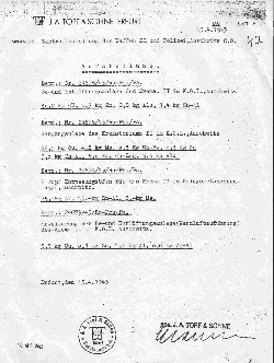 [240] | Hydrogen cyanide would form poisonous residues with moist food. The gases Areginal and Cartox were used; see also G. Kunike, Das ABC der Vorrats- und Hausschädlinge und ihre Bekämpfung, Theodor Weicher, Berlin 1941, pp. 53f. |