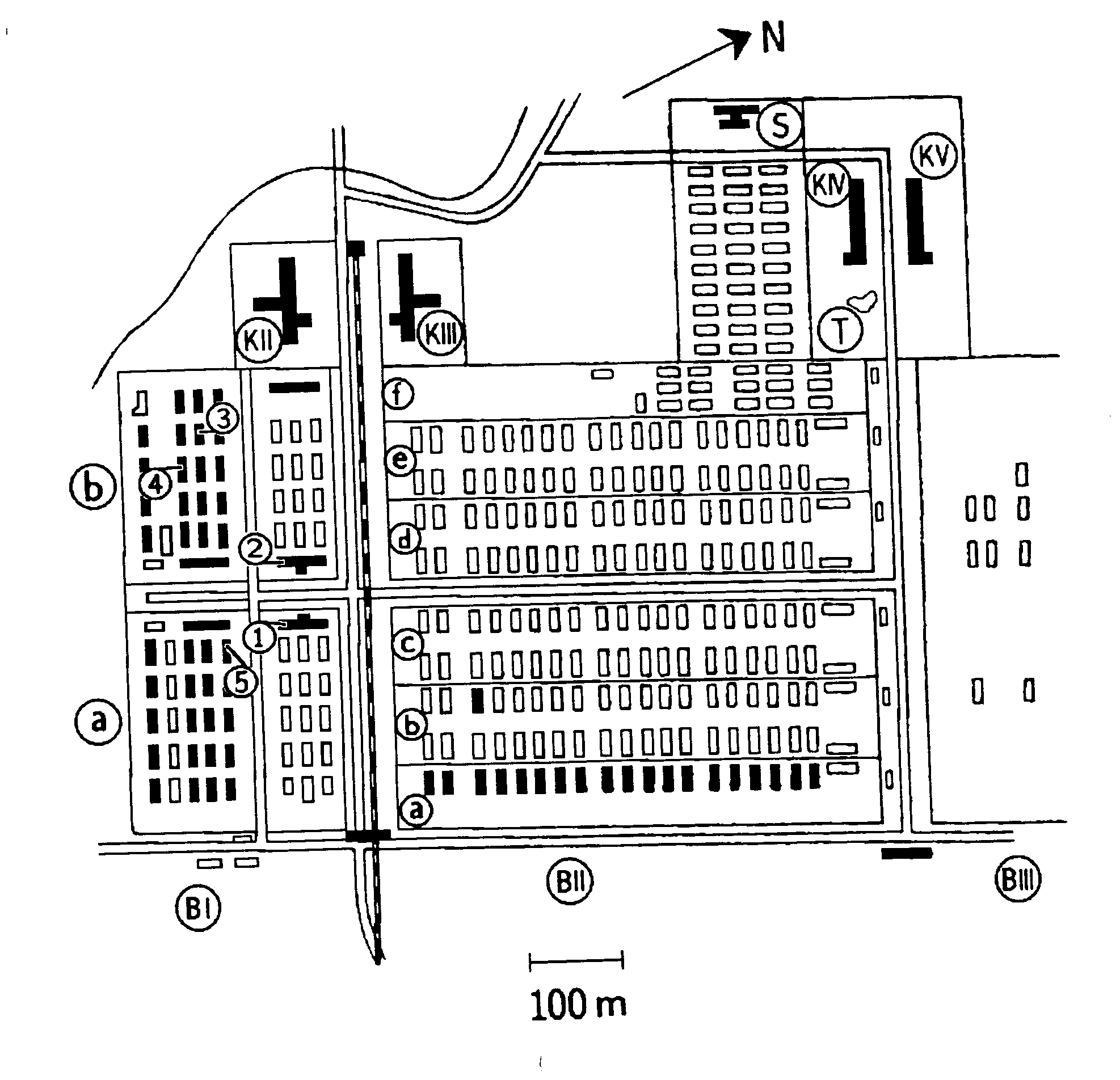 Fig. 11: Map of Auschwitz I/Main Camp (concentration camp), according to the information brochure of the Auschwitz State Museum in 1991. |