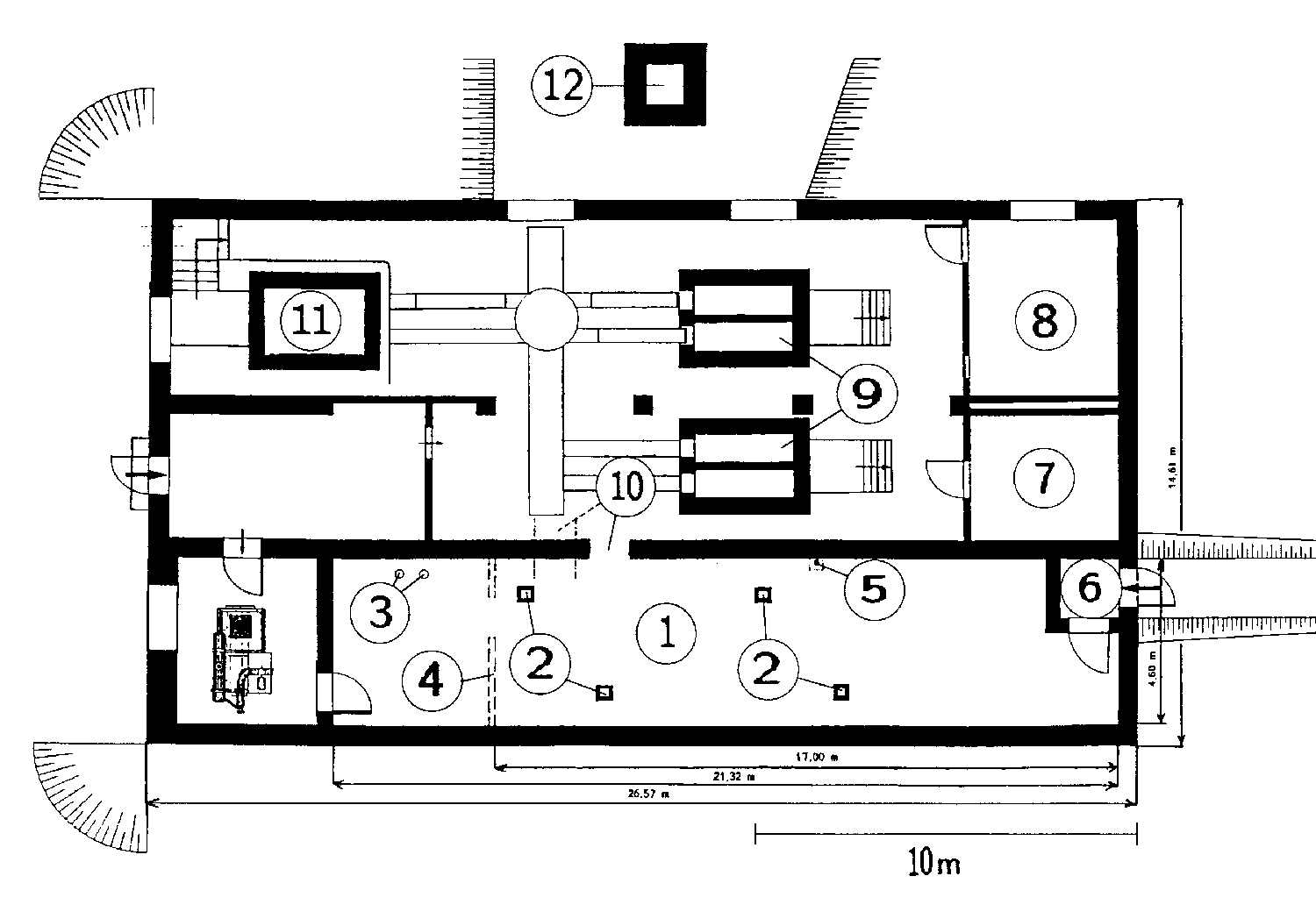 Of the installations used for disinfestation in the Birkenau camp using Zyklon B, only buildings 5a and b (BW 5a/b) in construction sections 1a/b (Bauabschnitt 1a/b) remain intact. In these buildings, one wing each is said to have been temporarily used for the disinfestation of personal effects with hydrogen cyanide. The following is an architectural and structural description of the individual structures of the Auschwitz main camp and Birkenau, Figs. 11 and 12.