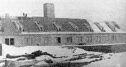 Disinfestation building at Deutsche Ausrüstungs-Werke (German Equipment Works, i.e., Canada I): 1 hydrogen cyanide gas disinfestation installation (BW 28) for approximately 30,000 pieces of laundry, blankets, etc. (in operation since the summer of 1942).