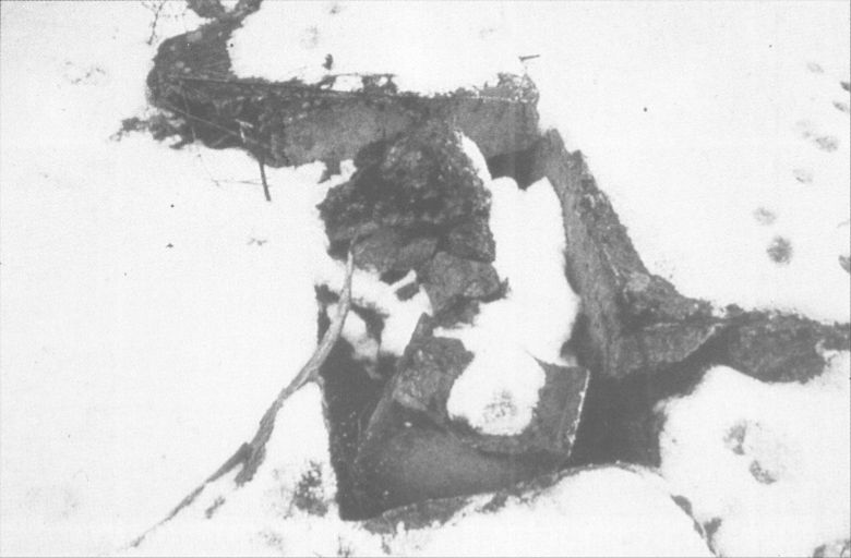 [310] | Only small pieces of the skull were left over which were located in a corner of the pit. Communications of Dr. M. Dragan, whom I helped to investigate the carcass' remains in June 1999. |