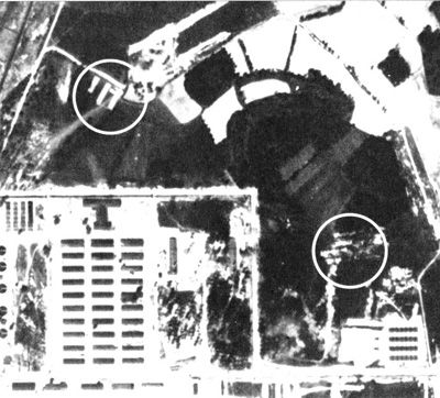[248] | Alliied aerial photographs, National Archives Air Photo Library, Washington, D.C., RG 373 Can F 5367, exp. 3185, published by CIA employees D.A. Brugioni and R.G. Poirier, Le Monde Juif, no. 97, January-March 1980, p. 2, allegedly on their own, private, responsibility. |