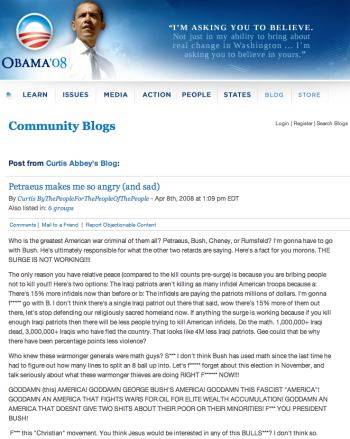 The official Obama Campaign website is a home for American haters of